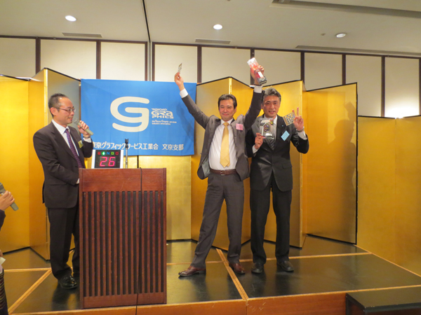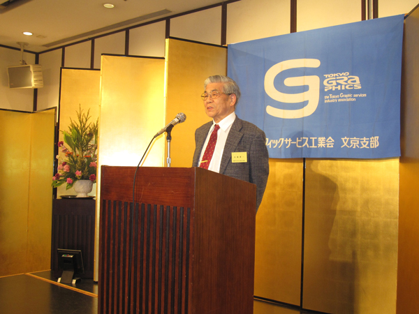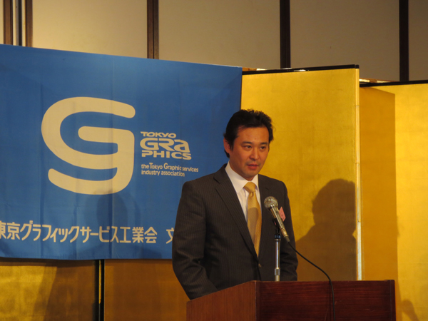 寒波に見舞われた寒い師走の中、来賓の野上東京グラフィックス副会長、斎藤東グラ青年部FACE会長を筆頭に